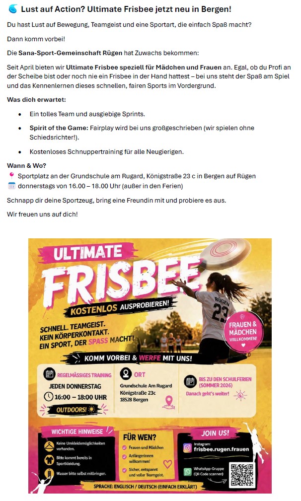 Liebe Sportfreundin, lieber Sportfreund,