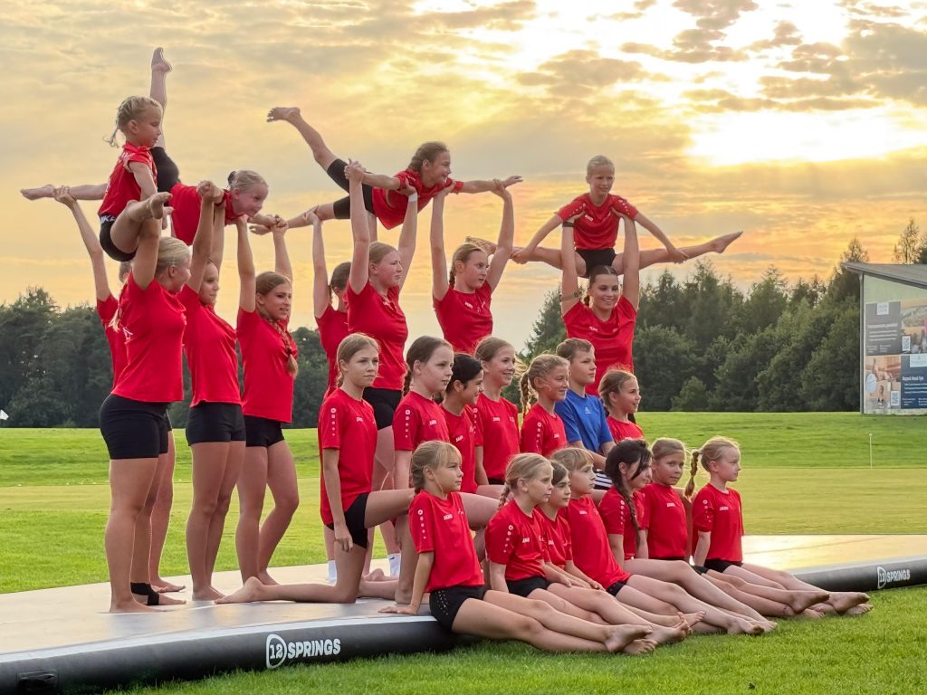 Eine Woche später durften wir beim Benefiz-Golfturnier des Rotary-Club unser Können zeigen. Dafür brachten wir extra unsere Airtrack und wieder zwei kleine Balken mit und turnten unser Programm nach Musik in der schönen Location der Golfanlage. So turnten hier die jüngeren Mädchen tolle Sprünge und sogar Räder auf den Balken und die Kürmädchen und der einzige Junge, Philipp, zeigten ihr Können mit Überschlägen, Salti und Rondat, Flick-Flack auf der Airtrackbahn. Die Sonne strahlte mit den Kinderaugen, als die Zuschauer auch hier den Beitrag mit tosendem Applaus bedachten.